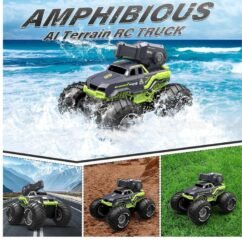 Voiture Télécommandée Amphibie Tout Terrain Etanche Bateau RC avec Pistolet à Eau