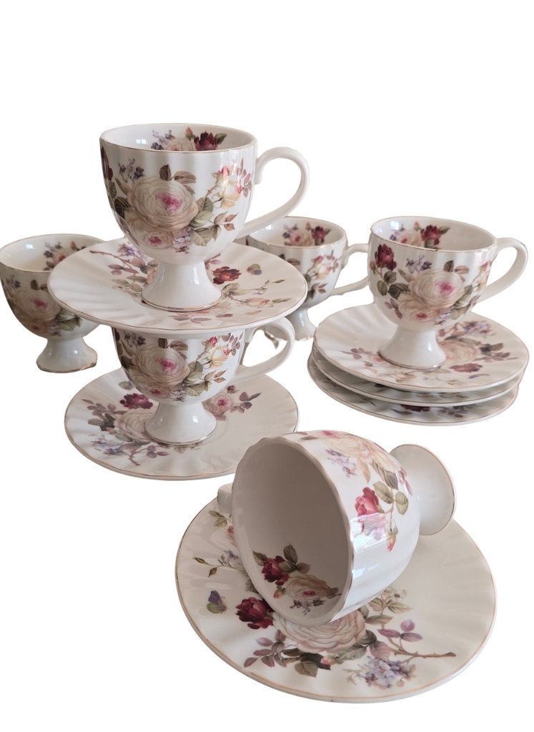 Contenu : 12 pièces (6 tasses + 6 soucoupes)