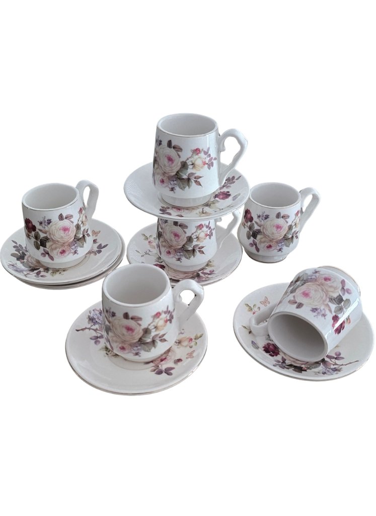 Contenu : 12 pièces (6 tasses + 6 soucoupes)